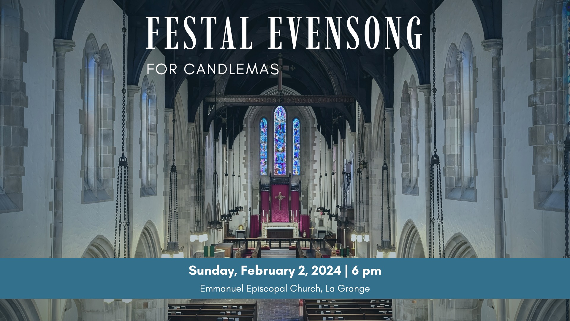 Emmanuel Episcopal Church 203 S. Kensington Avenue, La Grange, IL, United StatesJoin the combined choirs of Emmanuel La Grange, Grace Oak Park, and St Mark's Glen Ellyn for a very special Evensong featuring Anglican classics including Stanford in C.