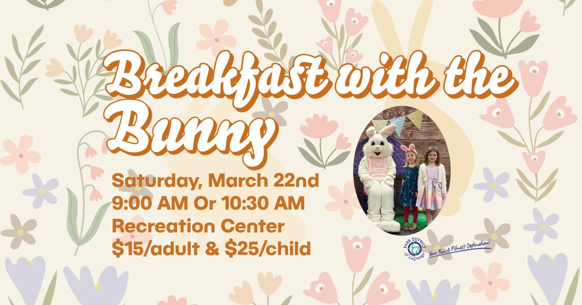 Breakfast will begin at the start of the event. Each child will have an opportunity to have their picture taken with the Easter Bunny and take home some goodies. Infants are free with paying sibling. Don’t forget your camera! Registration deadline is March 22nd.