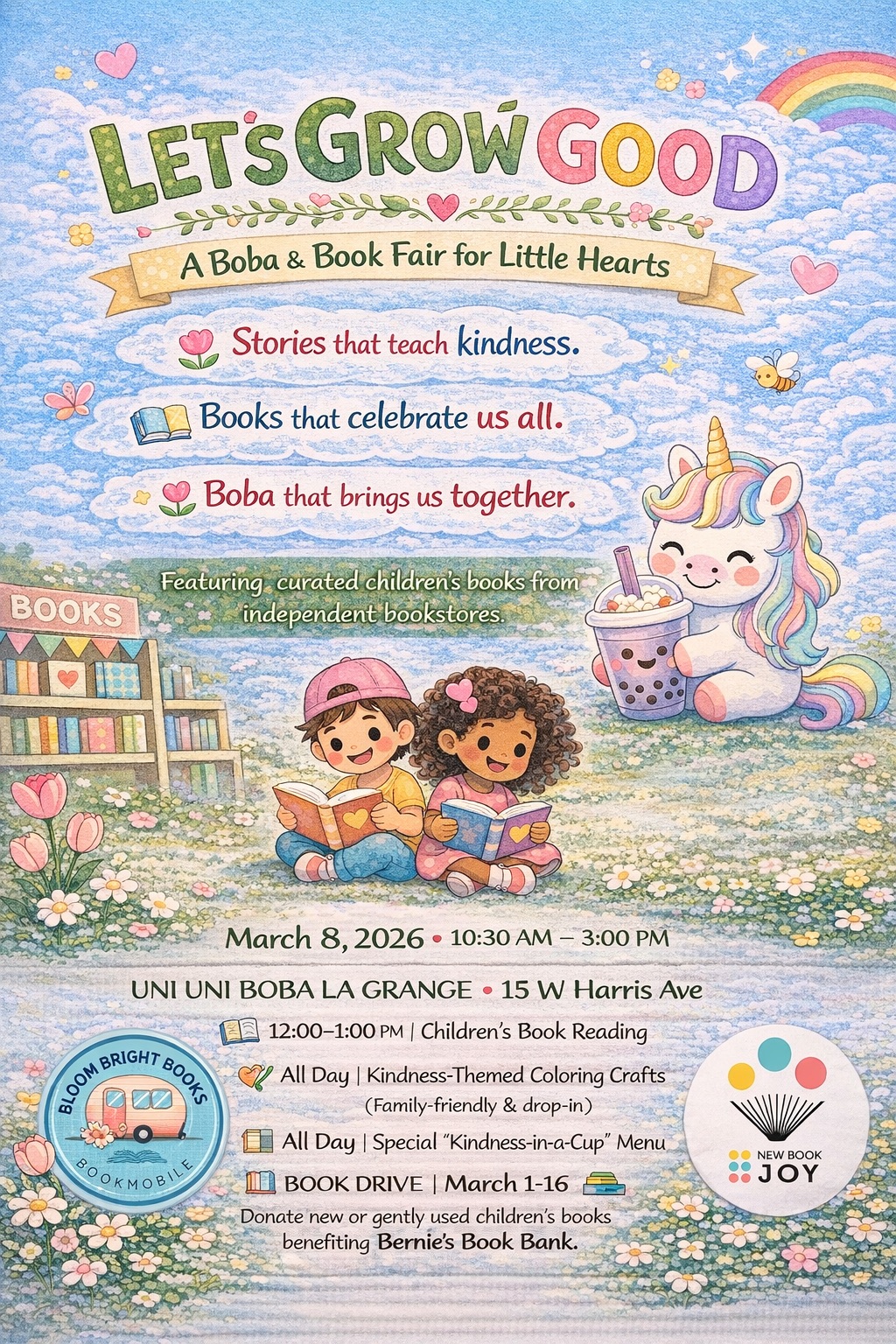 Spring is here and we aim to grow good. Join us for a kindness focused event to celebrate compassion, goodness and caring through stories and shared sweet boba sips. Our event will feature books and book readings from local independent bookstores - New Book Joy and Bloom bright books. Proceeds from our special GOOD MENU […]