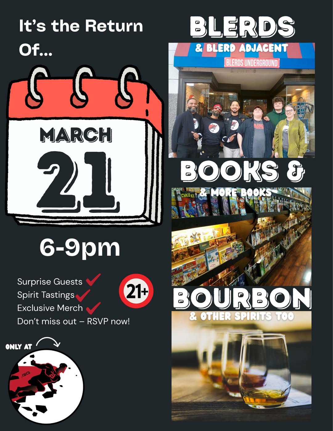 Y'all know what time it is! Don't wait, grab tickets for the return of BB&B! This month we've got a special surprise - we've got ComicsPro exclusive books, including some signed by legends in the game like Todd McFarlane & Frank Miller! Hope to see you there! Link below https://the-blerds-underground.square.site/ |