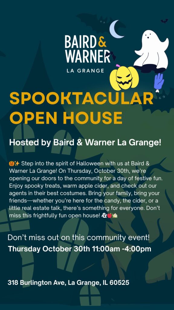 🎃✨ Step into the spirit of Halloween with us at Baird & Warner La Grange! On Thursday, October 30th, we’re opening our doors to the community for a day of festive fun. Enjoy spooky treats, warm apple cider, and check out our agents in their best costumes. Bring your family, bring your friends—whether you’re here for the candy, the cider, or a little real estate talk, there’s something for everyone. Don’t miss this frightfully fun open house! 👻🍎🏡
