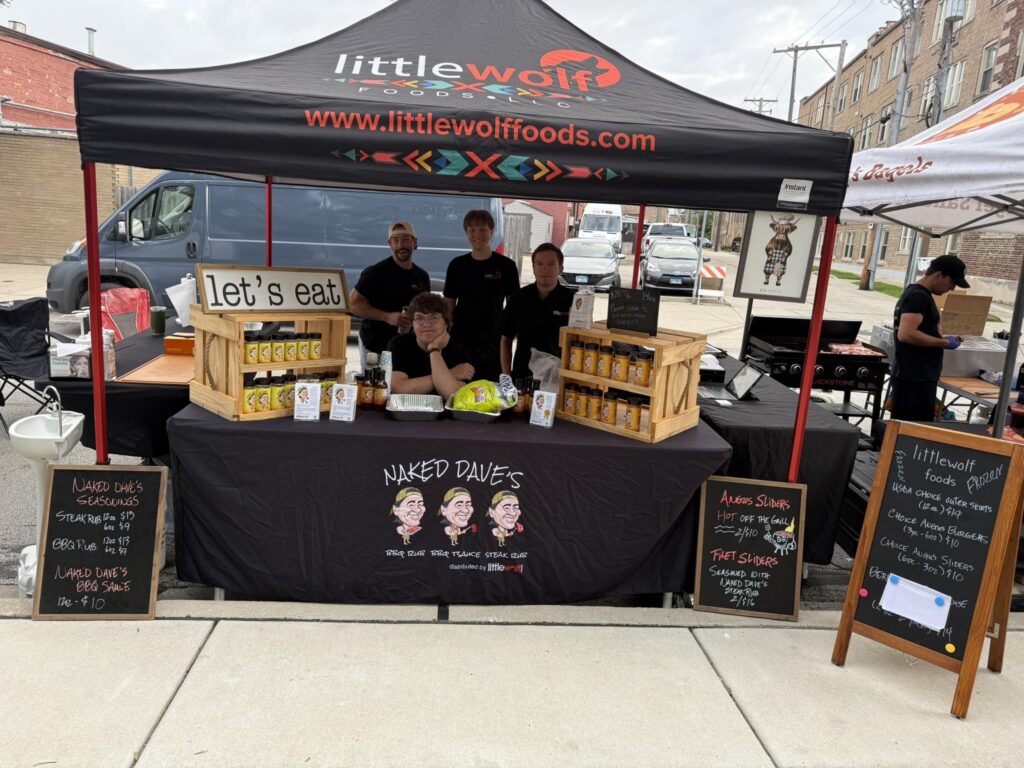 Little Wolf Foods is a local family-owned and operated business specializing in high-quality meats, house-made rubs, and BBQ sauces. Their offerings include a range of premium cuts such as steaks, pork chops, burgers, and sliders, all prepared with a focus on quality and flavor.