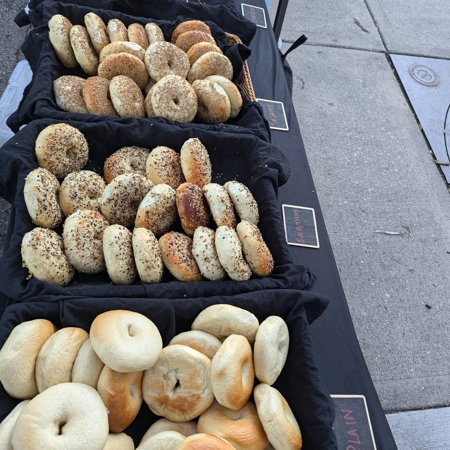 Fresh bagels, cream cheese, and breakfast sandwiches made to grab and go.